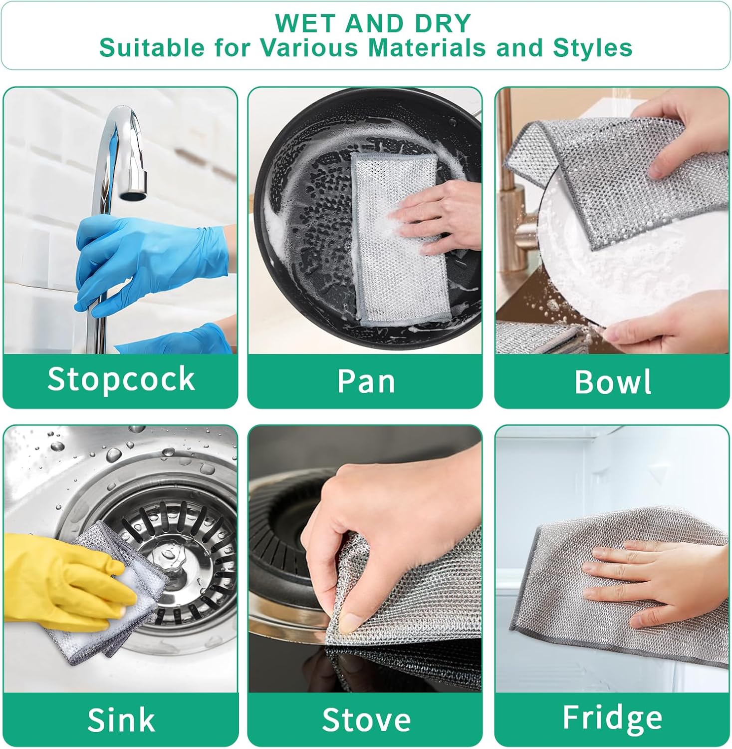 MULTI-PURPOSE CLEANING: Metal dish cloth for cleaning dishes, pots, pans, stovetops, and sinks. also suitable for grills, tiles, and outdoor tools—making it a versatile all-in-one cleaning essential.