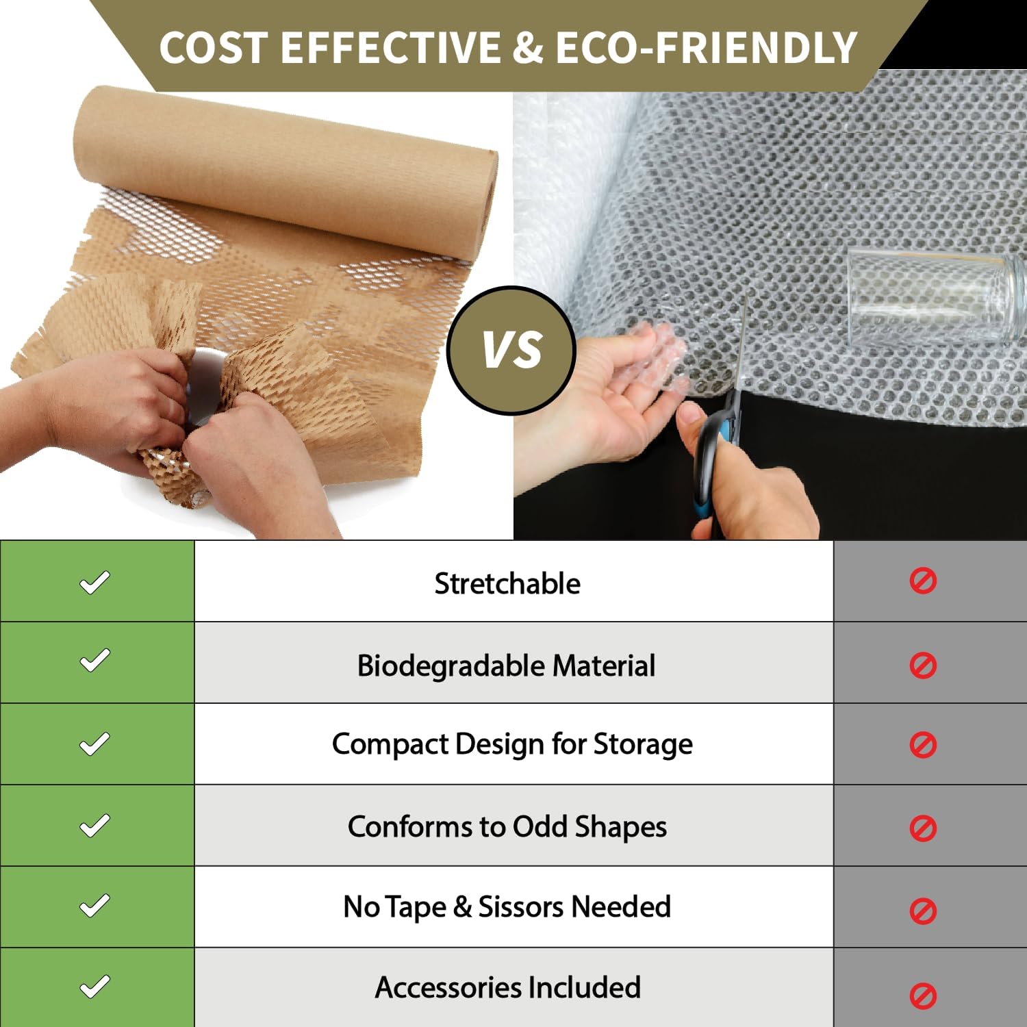 60% More Length For Craft Lovers: If you love selling small things online or making cute gifts for loved ones, you’ll love knowing our extra-long honeycomb paper cushioning wrap stretches from 100 feet all the way to 160 feet! So you get 60% more length from ecoducer honeycomb wrapping paper rolls. We also include 100ft jute twine roll to match your eco, natural, organic, boho, or farmhouse theme.