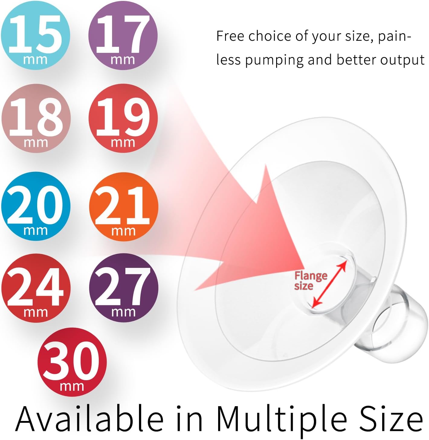 Available in multiple sizes: 15mm,17mm,18mm,19mm, 20mm, 21mm, 24mm, 27mm, 30mm.To accommodate nipples of different sizes.