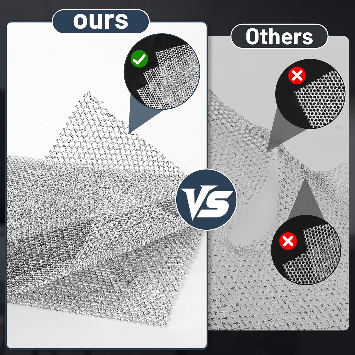 【New Upgraded 3-Layer Diamond Weave】Our New upgrade metal wire dishwashing cloth includes three layers of thickened diamond shaped metal wire fabric, which has stronger cleaning ability and can effectively remove stains.