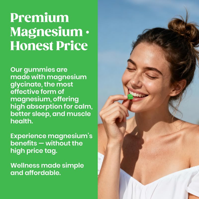 Superior Absorption, Gentle on the Stomach: Our Magnesium Glycinate gummies deliver an advanced form of magnesium that offers superior bioavailability and gentle digestion. Unlike other common forms such as magnesium oxide or magnesium citrate, magnesium glycinate is more easily absorbed by the body and less likely to cause stomach discomfort—allowing you to get the full benefits with every serving.