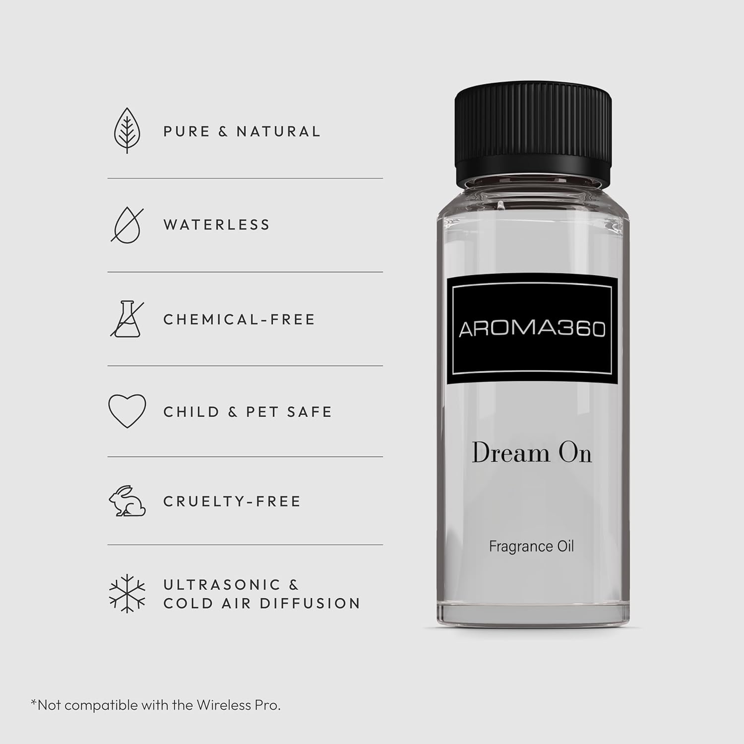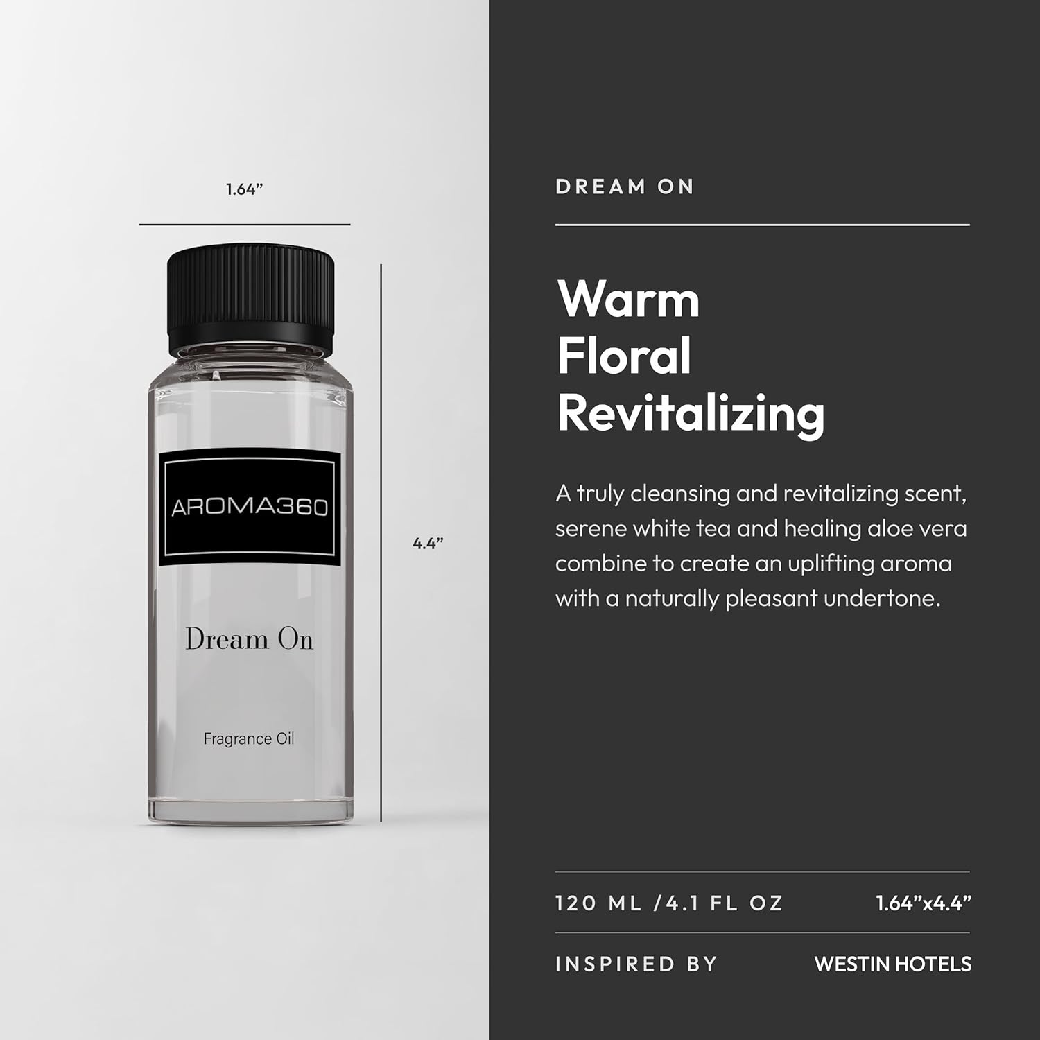 Aroma360 – Dream On Fragrance Oil Blend | Hotel Inspired for Luxury Essential Oil Diffusers | Aromatherapy Scent Diffuser Oil | Serene White Tea, Healing Aloe Vera, and Warm Earthy Cedar. – 120ML