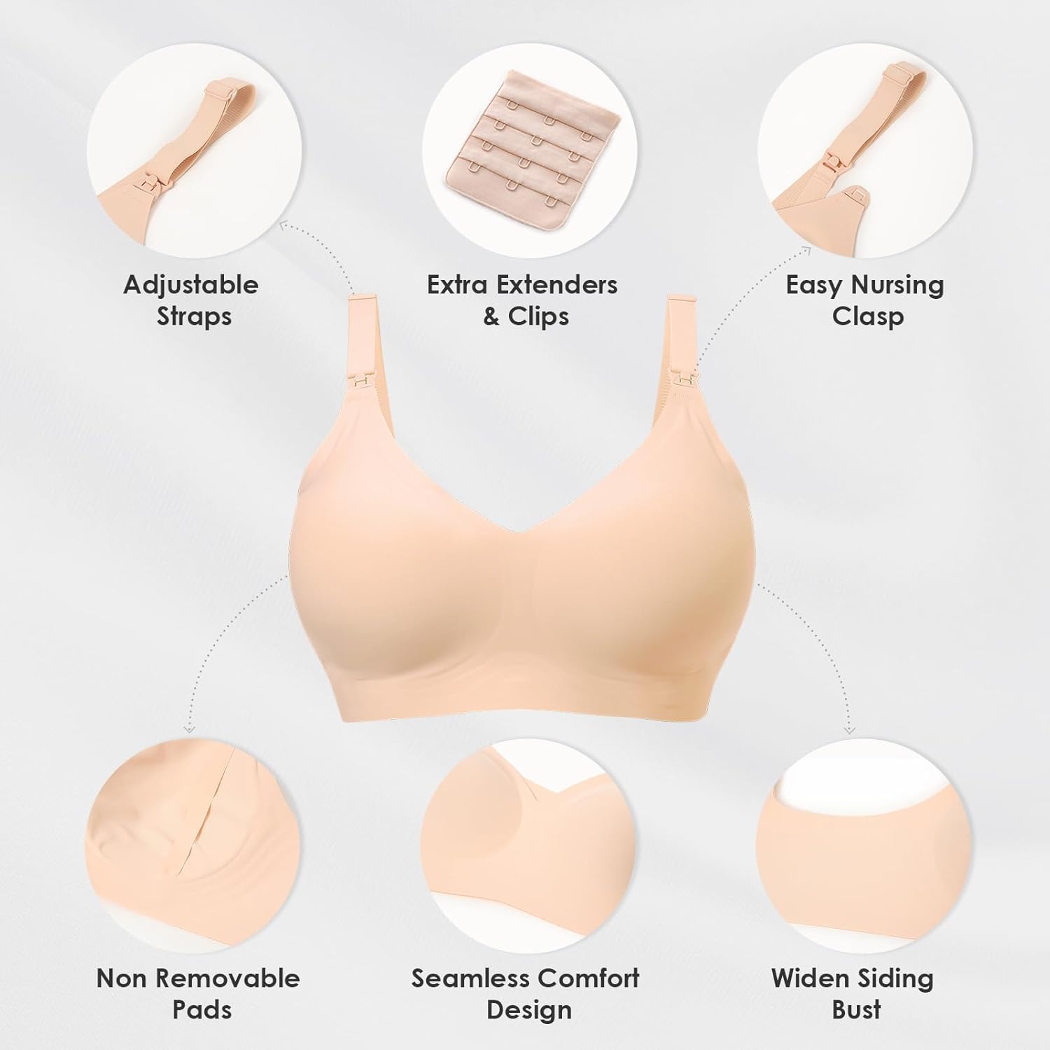 This nursing bra is a game-changer! 💕 It’s super comfortable with soft, stretchy fabric that provides just the right amount of support. The clips are easy to open and close with one hand, making breastfeeding so much more convenient. The design is discreet under clothes and doesn’t dig in anywhere, which is a huge bonus for all-day wear. It’s breathable and stays in place without feeling restrictive. Perfect for new moms who want both comfort and functionality!