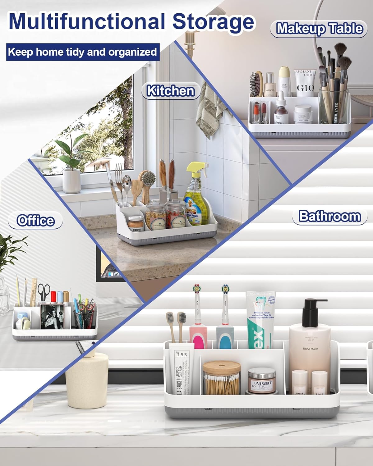 Premium Material & Crafted: Constructed from premium thick plastic, the bathroom organizers are built to withstand daily use without cracking or breaking. Smooth edges with no burr not only enhance safety for your hands but also protect your countertop from unwanted scratches, ensuring a reliable and stylish storage solution for your bathroom countertop accessories
