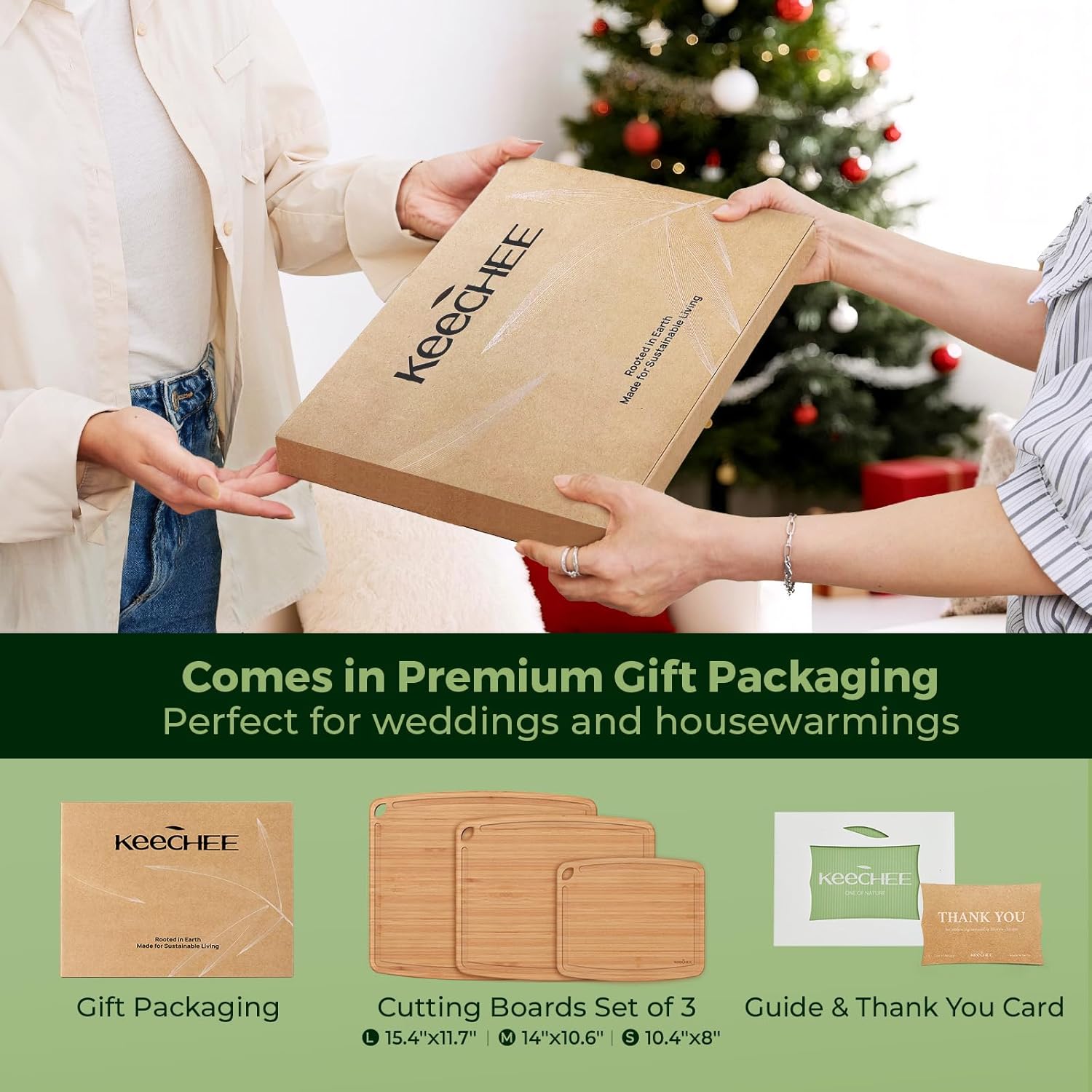 8 reviews for Dishwasher Safe Bamboo Cutting Boards Durable Lightweight Wood Cutting Board for Busy Kitchen, Easy Clean Wooden Chopping Boards with Juice Groove Set of 3 (L+M+S)
