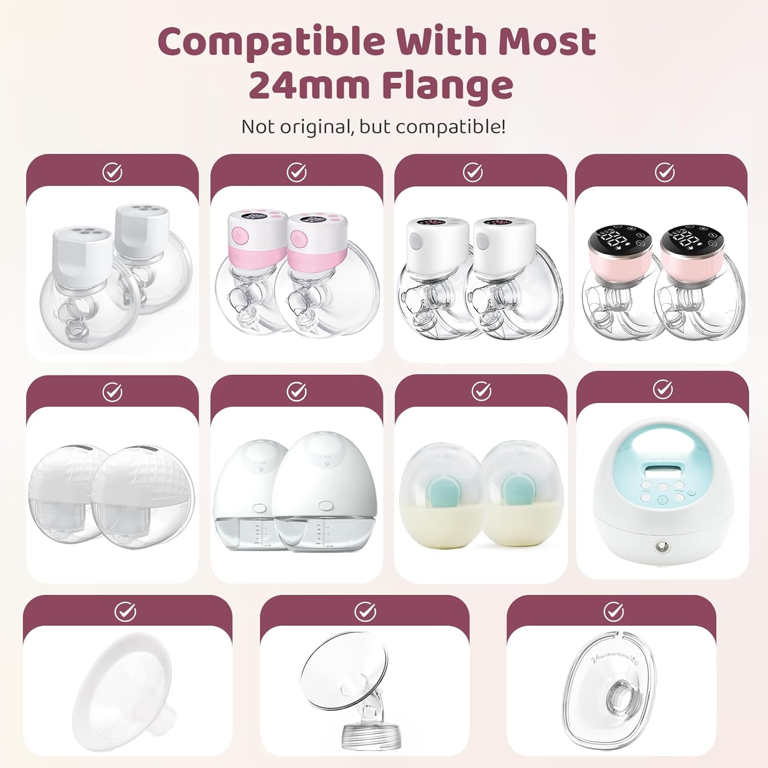 Compatibility and Versatility: These breast pump flange size kits are designed to seamlessly integrate with various 24mm wearable breast pumps. Their extensive compatibility saves time and effort