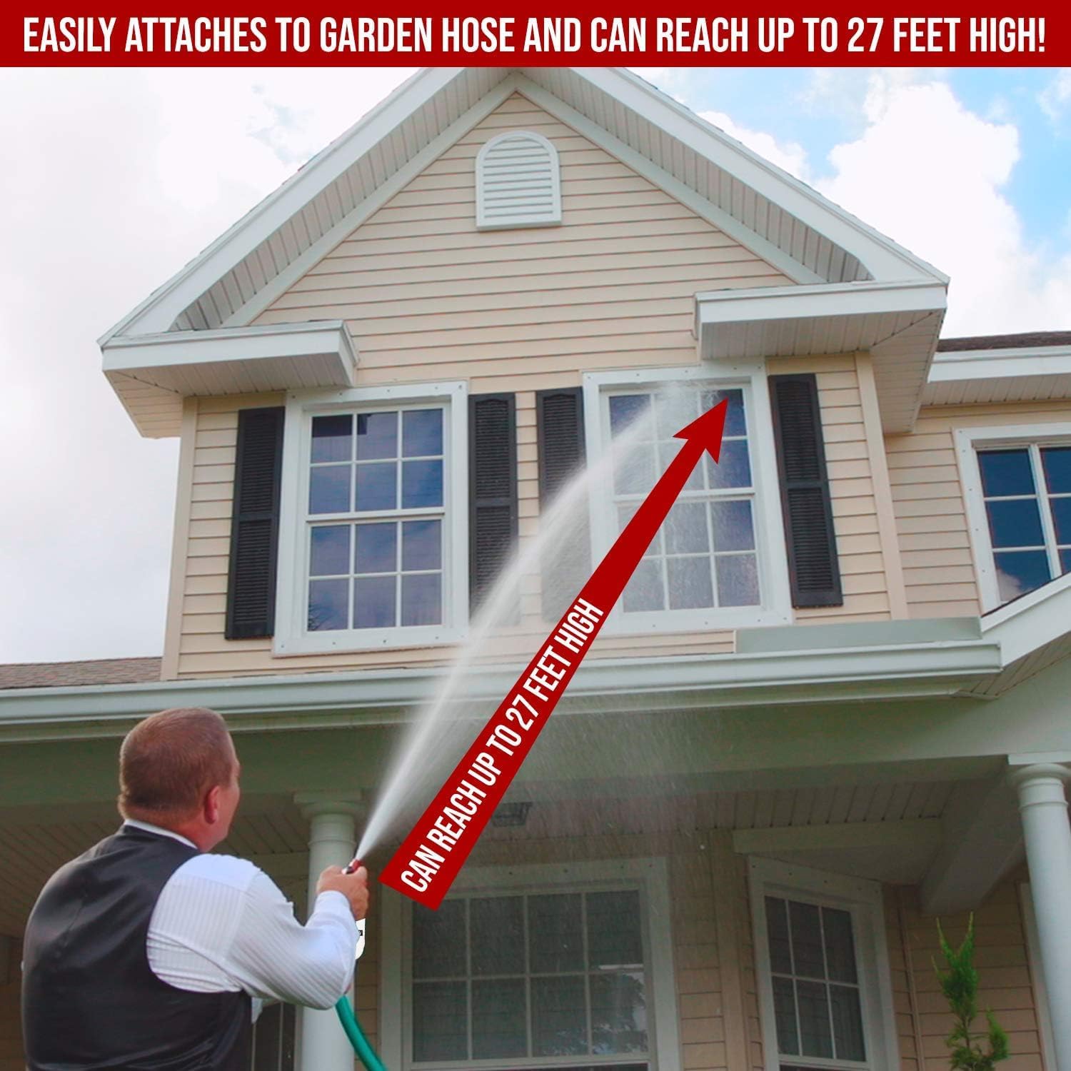 REACHED UPTO 27 FEET HIGH: No scrubbing, rising or using ladders to clean the hard to reach second story shutters, windows, gutters, and overhangs. Just apply this highly concentrated formula and walk away. This product has not been tested to treat mold or mildew.