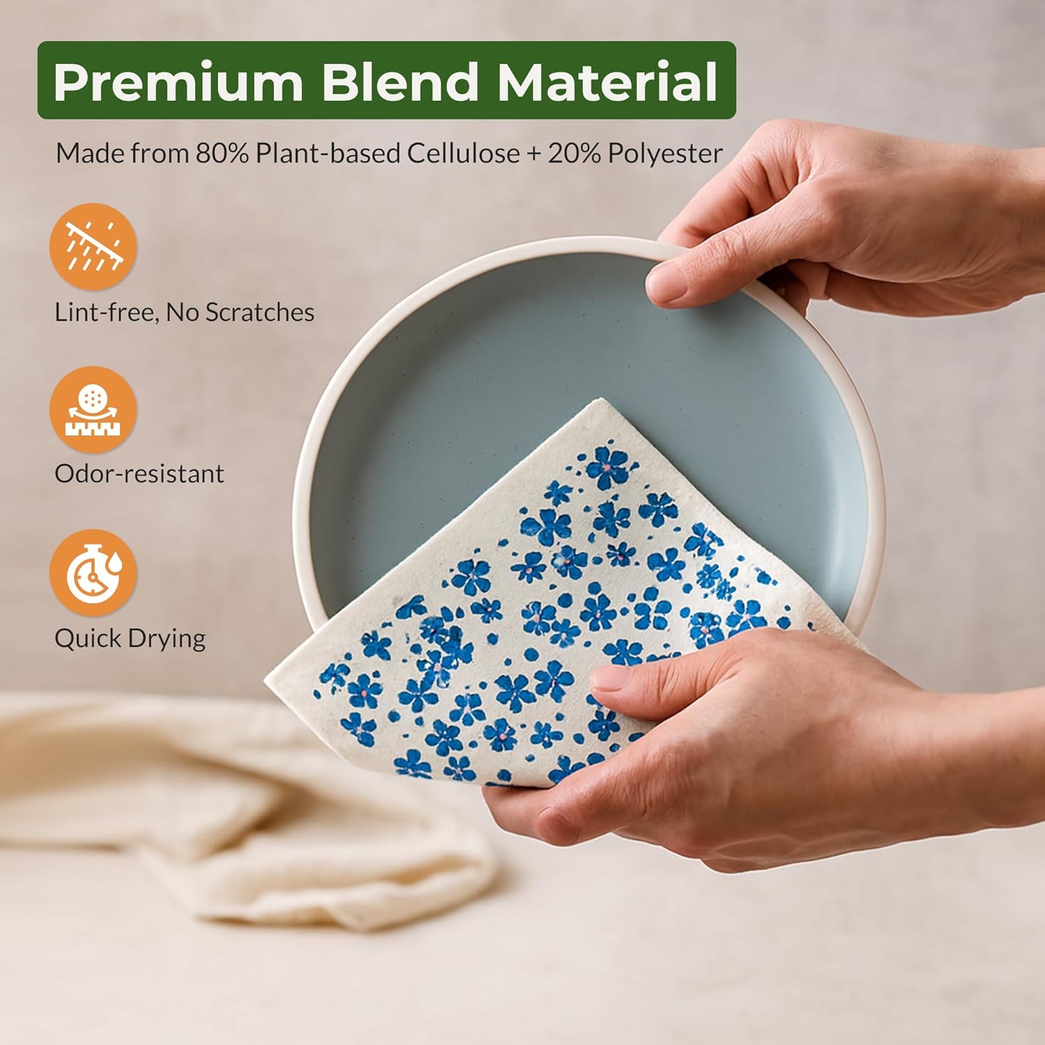 SUPER ABSORBENT: Swedish dishcloths made with 80% plant-based cellulose and 20% polyester for superior absorption and effective cleaning on multiple surfaces