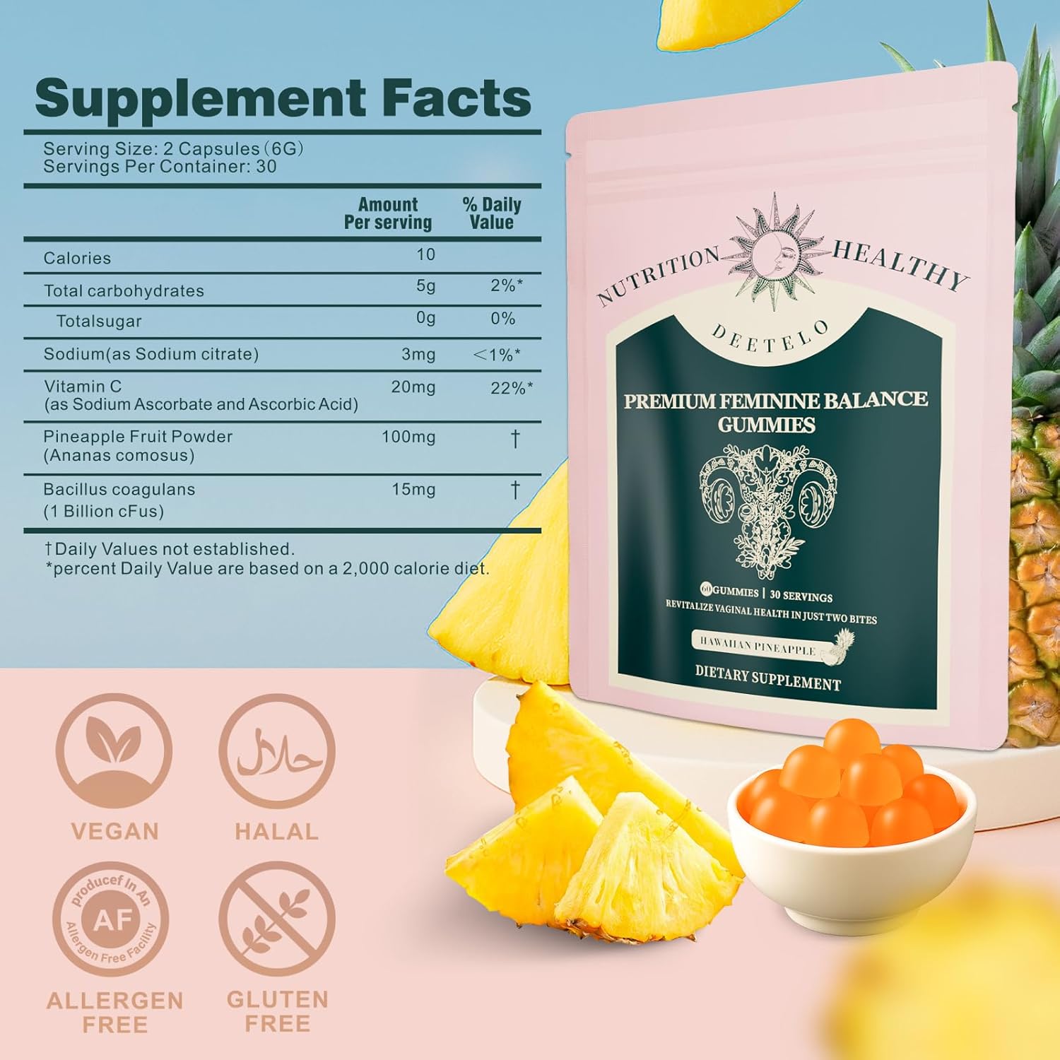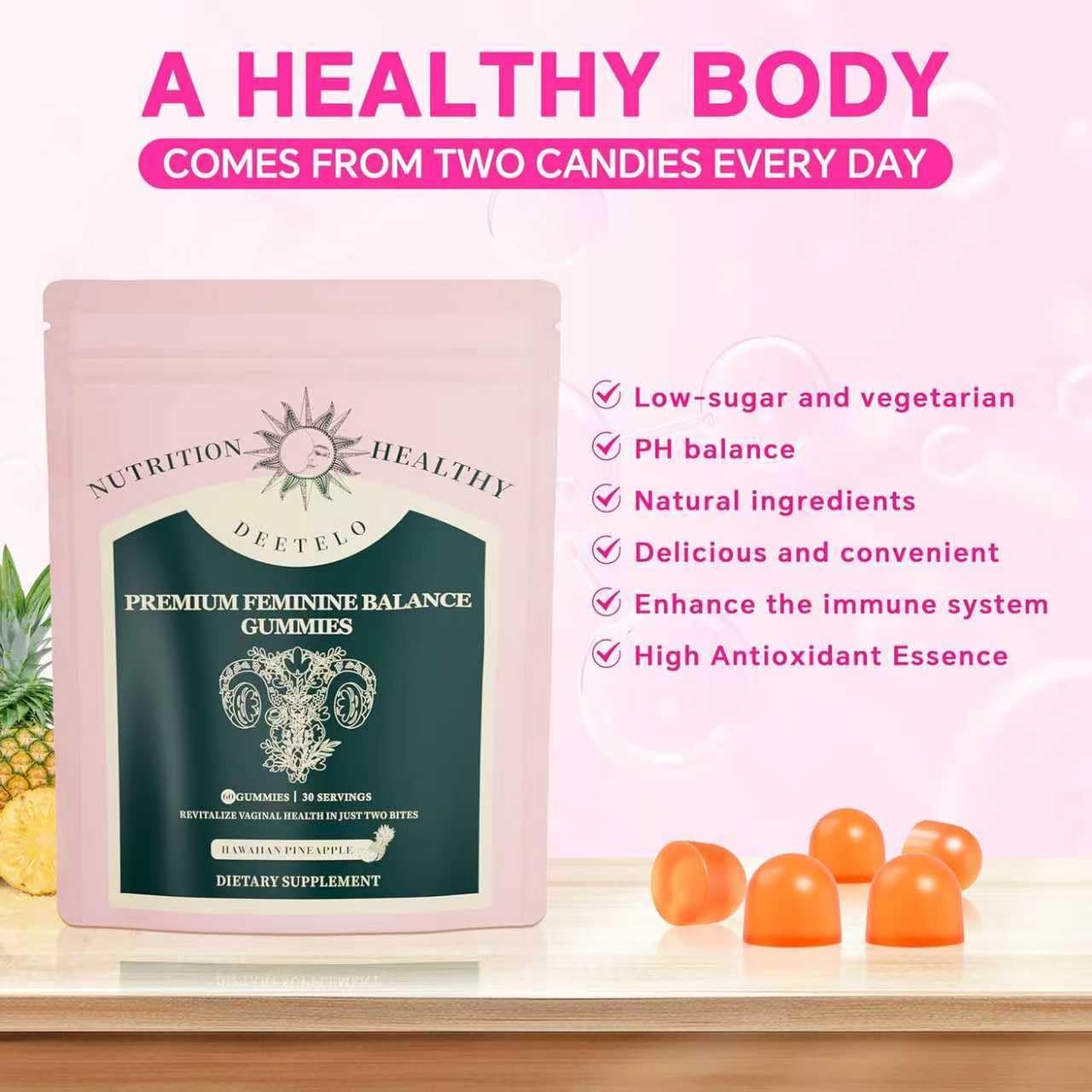 Formulated for Feminine Wellness These feminine balance gummies for women support overall feminine health with a dual-action blend for natural pH balance and immune support – all in a delicious pineapple gummy