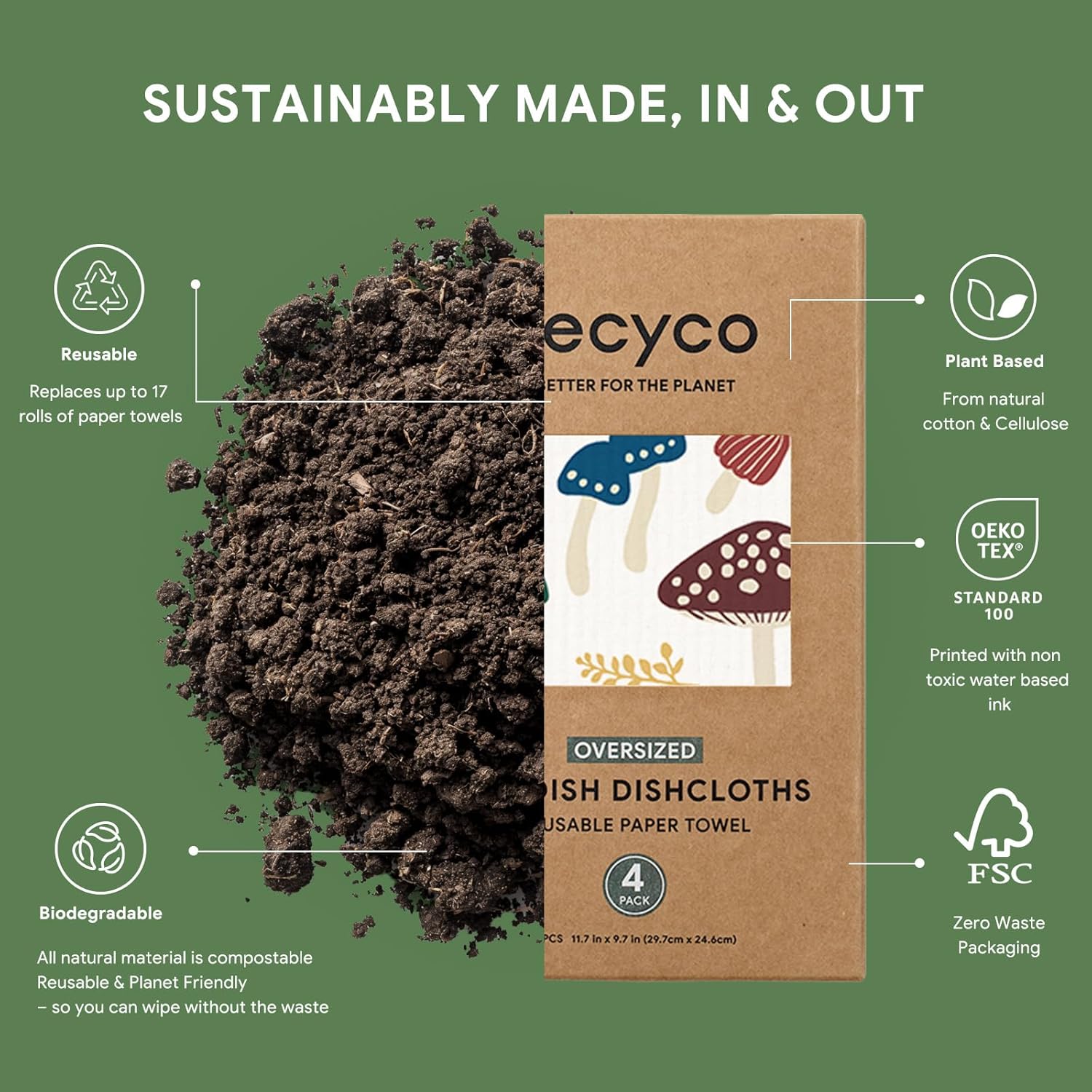 12 reviews for RECYCO Swedish Dishcloths for Kitchen | 4 Pack Oversized Washable Dish Rags | Large Cellulose Reusable Cleaning Paper Towels | Absorbent Counter Dish Cloth Sponge XL Kitchen Wipes, 12″ L x 10″ W