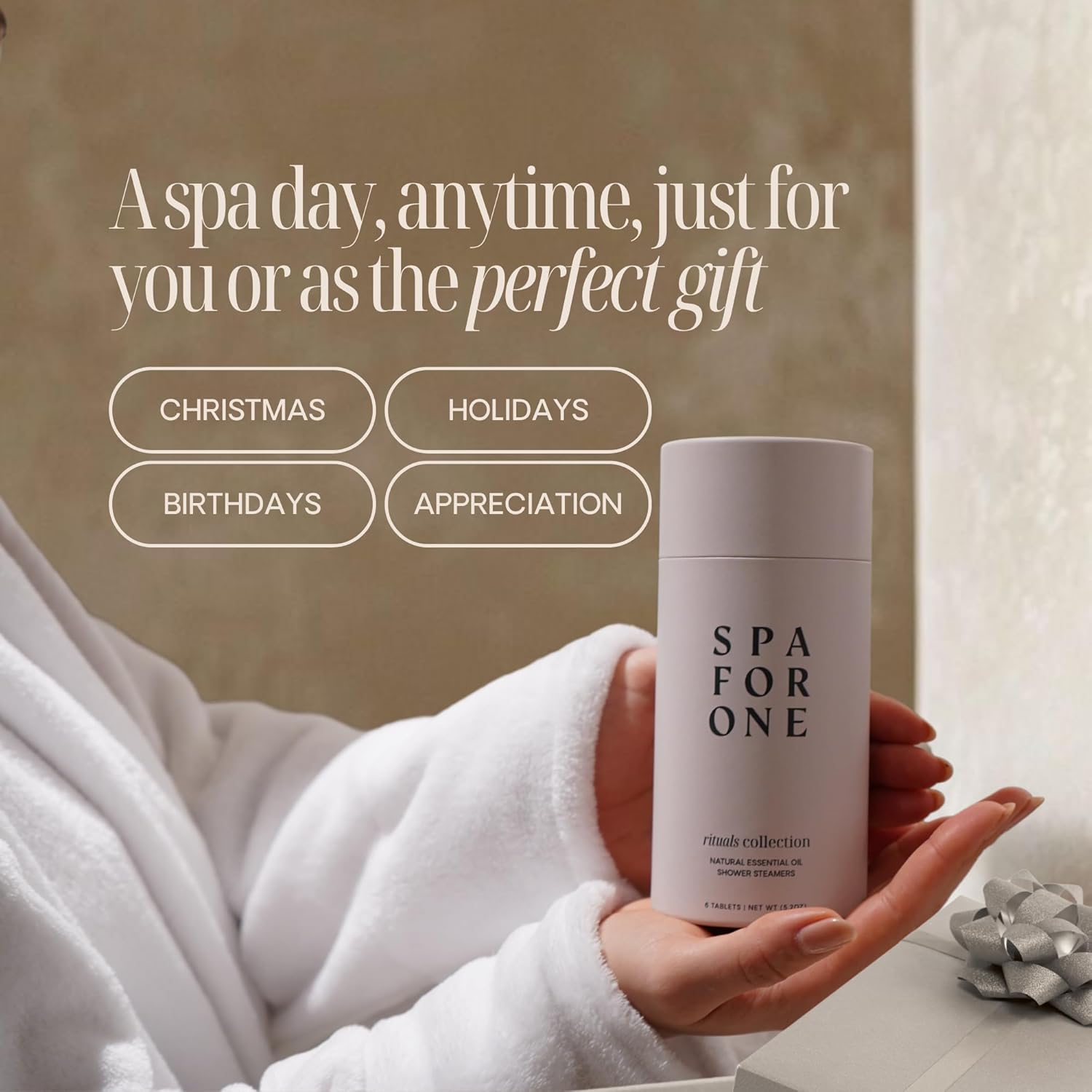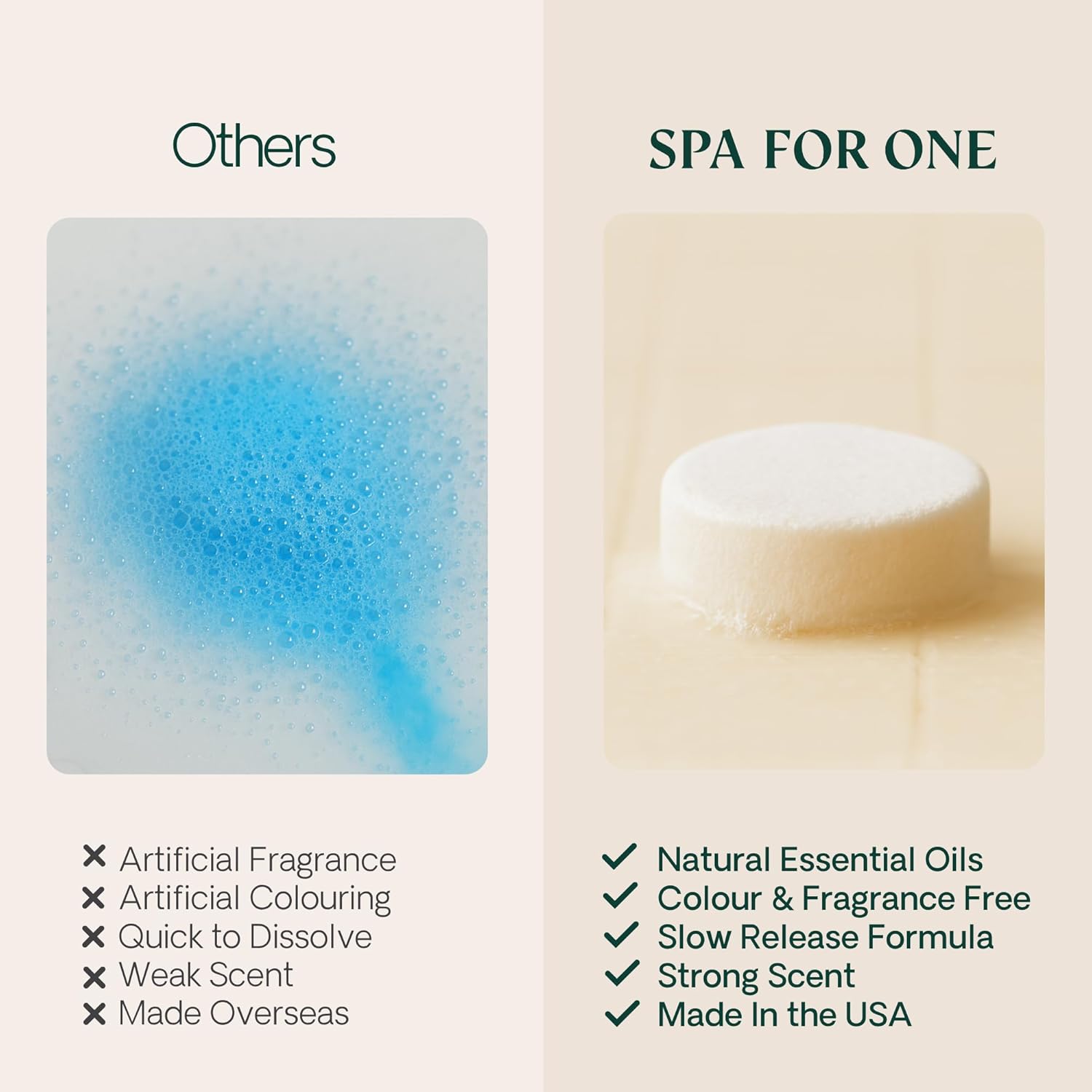 Bath Bombs for Your Shower: Transform your daily shower into a spa experience with Spa For One aromatherapy shower steamers. Each shower bomb releases natural essential oils for relaxation, stress relief, and rejuvenation. A perfect self-care gift for women and men who love wellness and spa gifts.