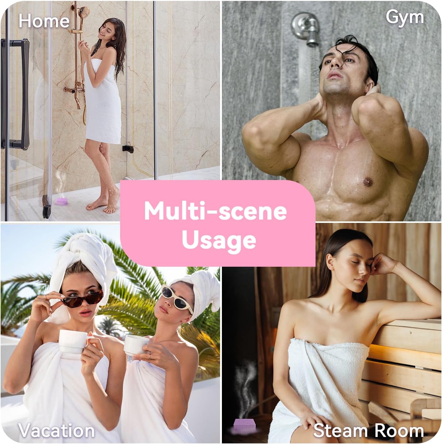 Multi-scene Usage: Our shower steamers bring spa-quality relaxation wherever you need it most. At home, let the soothing vapors turn your daily shower into a rejuvenating escape. After an intense gym session, breathe in the revitalizing aroma to help tired muscles recover. While traveling, these compact mood enhancers recreate the luxury of a five-star hotel bathroom wherever you go. For the ultimate indulgence, use them in your steam room to amplify the cleansing benefits and create a fully immersive sensory experience.